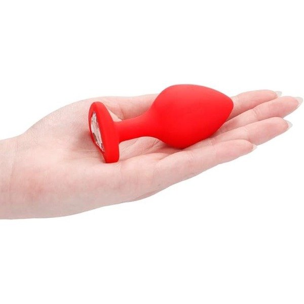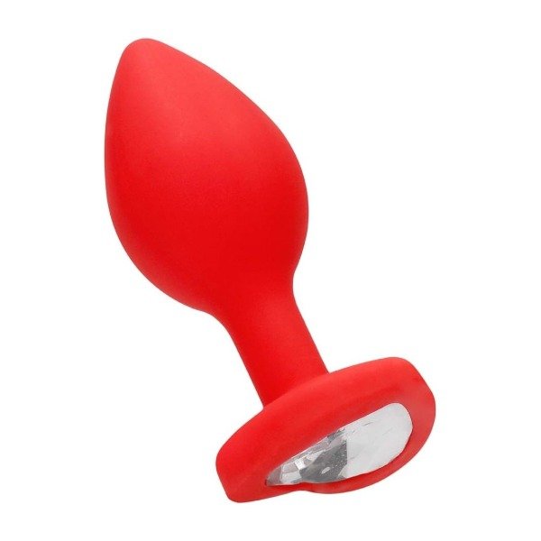Plug Corazon de silicona Rojo con Joya Cristal Clear. Talle: S